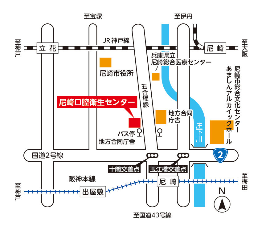 ホーム > アクセス アクセスマップ 地図をクリックすると拡大されます 交通アクセス 所在地:〒660-0892 兵庫県尼崎市東難波町4丁目13-14 最寄り駅:阪神本線「尼崎駅」から北へ徒歩10分 最寄りバス停:阪神バス「地方合同庁舎」すぐ 駐車場:あり